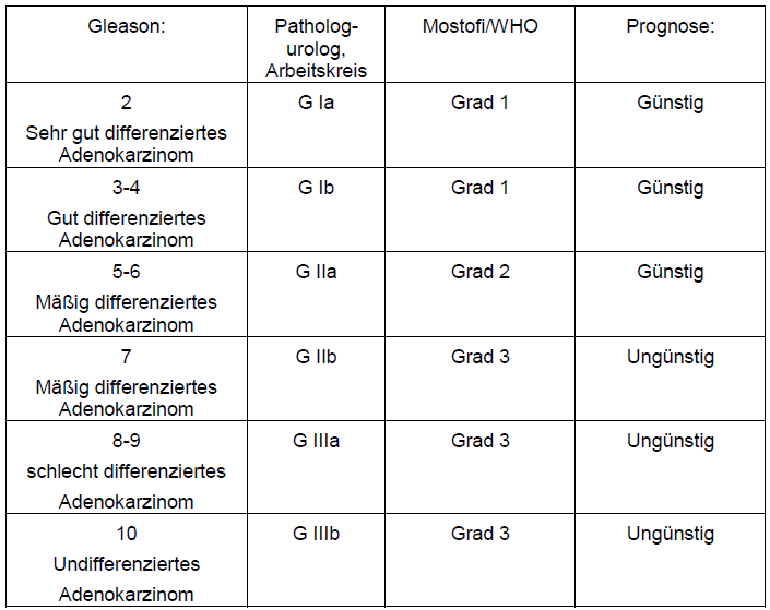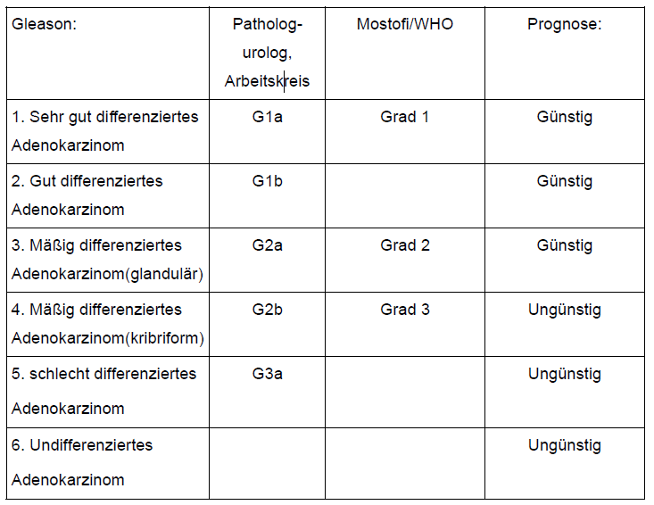| Tabelle 1: Vergleich derzeit verwendeter Gradingsysteme des Prostatakrebses