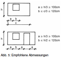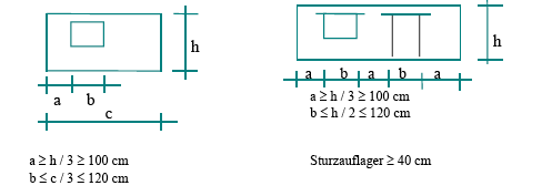 3.3.3.1 Fenster- und Türöffnungen [FN 55] Fenster- und Türöffnungen schwächen die Stabilität der Wand. Deshalb sollten die dargestellten Abmessungen unbedingt eingehalten werden. Zusätzlich muss die richtige Ausbildung der Stürze beachtet werden. Diese müssen zumindest 40 cm in die Mauerwand hineinreichen, oder über die ganze Fassade verlaufen und dabei fest mit dem Mauerwerk verankert sein. Am besten ist es, wenn kein Sturz vorhanden ist und der Ringbalken gleichzeitig die Funktion des Sturzes übernimmt. Es ist stets je eine Tür in entgegengesetzter Wandfläche als Fluchtweg vorzusehen [E4] vgl. S. 60. Abstand der Fenster und Türen von den tragenden Wänden:. Aos, S. 193, Abbildung ohne Nummer [Abb.: Wand mit Fenster, Wand mit Fenster und Tür, mit eingetragenen Abstandsmassen: a >= h / 3 >= 100 cm b <= c / 3 <= 120 cm a >= h / 3 >= 100 cm b <= h / 2 >= 120 cm Sturzauflager >= 40 cm] Die Lehmsteinwände können durch Versteifungsrippen, die sowohl an Ecken als auch bei Zwischenwänden, Türöffnungen und bei sehr langen Wänden, stabilisiert werden. Die Wände sollten auf Streifenfundamente auflagern und sie sollten am oberen Abschluß mit einem umschließenden Ringbalken versehen werden, der aus Holz bestehen kann. 3.3.3.2 Dachausbildung Dächer sollten so leicht wie möglich sein und sich verformen können, ohne dass Teile davon einstürzen. Ziegeldächer sind ungünstig. Da Giebel leicht einfallen und schwer zu stabilisieren sind, sind Dächer ohne Giebel wie Pyramidendächer oder Pultdächer vorzuziehen. Bei Pultdächern ist darauf zu achten, dass der Ringbalken an zwei Seiten schräg verlaufen muss. [FN 55] Erdbebensichere Häuser aus Lehm, S 2,3 von Gernot Minke |