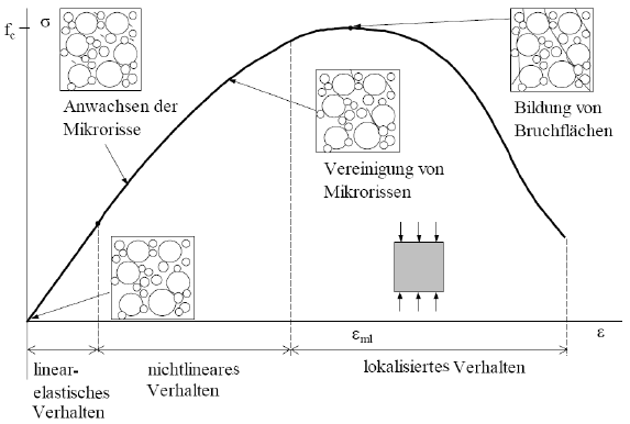 Weder die Quelle noch Huster (2000) ist hier genannt. In Huster (2000) sieht die Abbildung wie folgt aus: Abbildung 3-1 Einaxiales Spannungs-Dehnungs-Diagramm von Beton, in Anlehnung an [Mehlhorn 1996] Auch Mehlhorn (1996) ist nirgends in der untersuchten Arbeit genannt. |